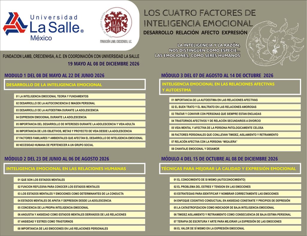 Este diplomado propone al participante adquirir conocimientos y habilidades para aplicar, de manera efectiva y práctica, estrategias, dinámicas y ejercicios para fomentar y desarrollar la inteligencia emocional.